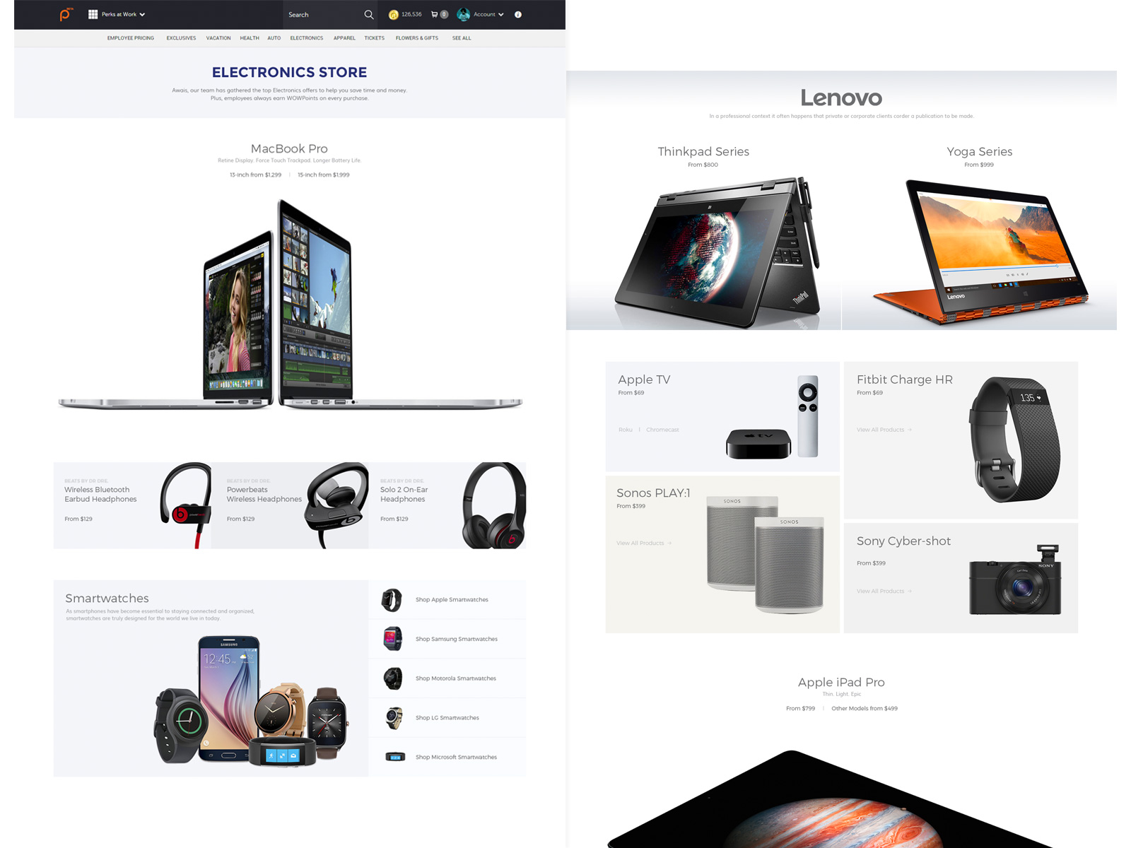 Our Electronics Store is one of our highest revenue generators. We offer a wide range of products and exclusive pricing on industry-leading merchants like Samsung, Apple, Lenovo, Rosetta Stone, Dell, etc. We also have a whole Best Buy experience on our site, with all the product catalogs.
