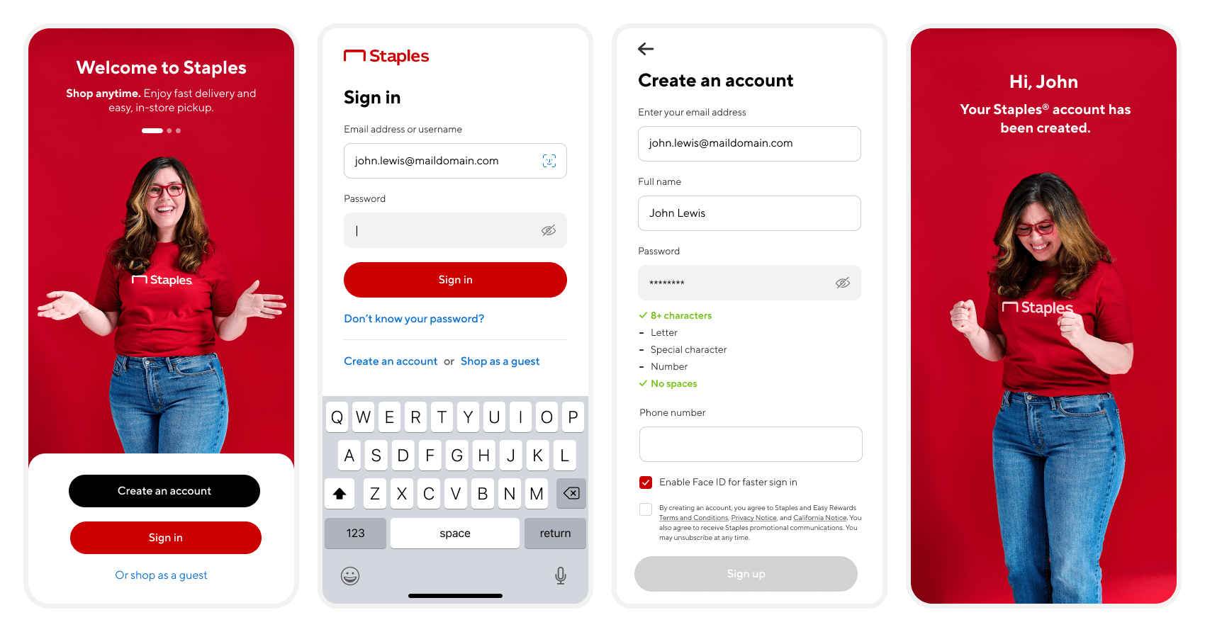 Designed and helped develop a seamless unified login for multiple Staples platforms, enhancing security and reducing friction, which led to a 90% login success rate.